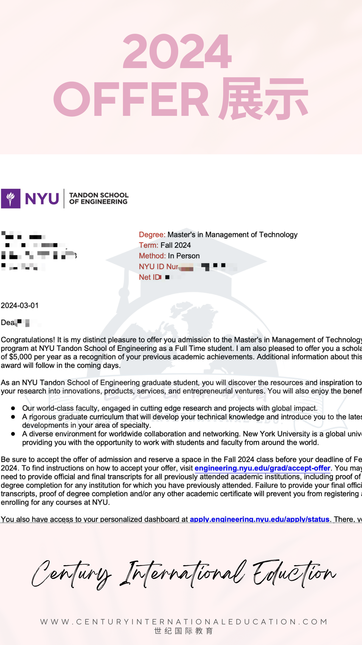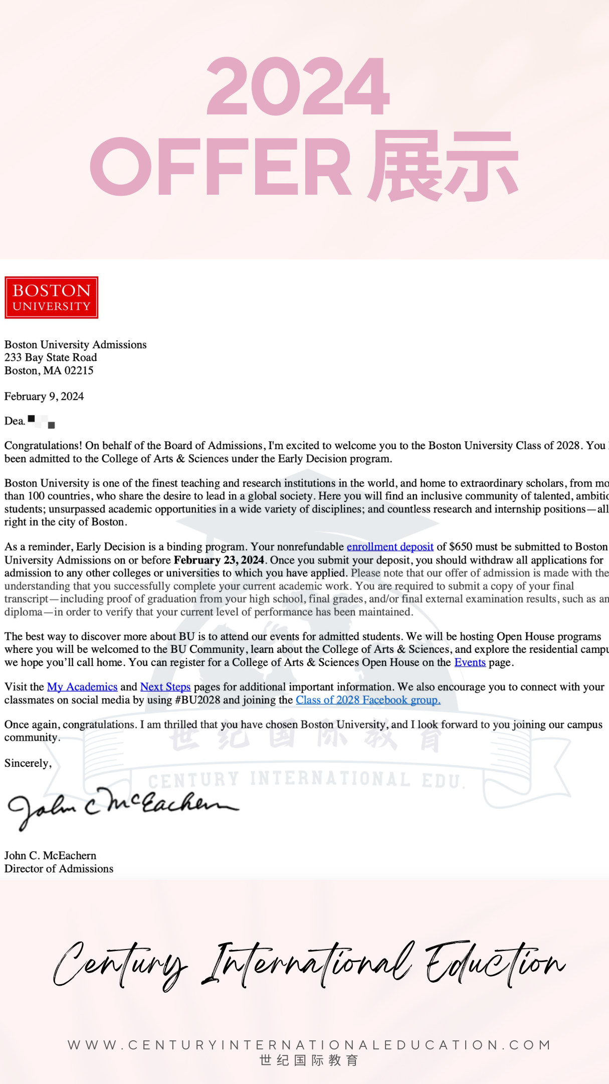 2024年,Century International Education再次帮助众多学生成功获得了美国顶尖大学的本科与研究生录取通知。